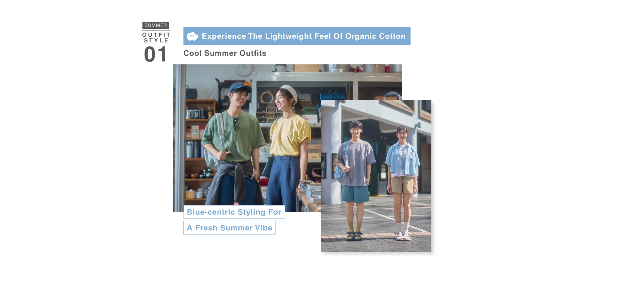 Using blue as the central theme of the outfit creates a light and comfortable summer mood. Pairing it with airy, breathable pieces enhances the sense of ease, while simple accessories add subtle highlights that complete the overall seasonal look.