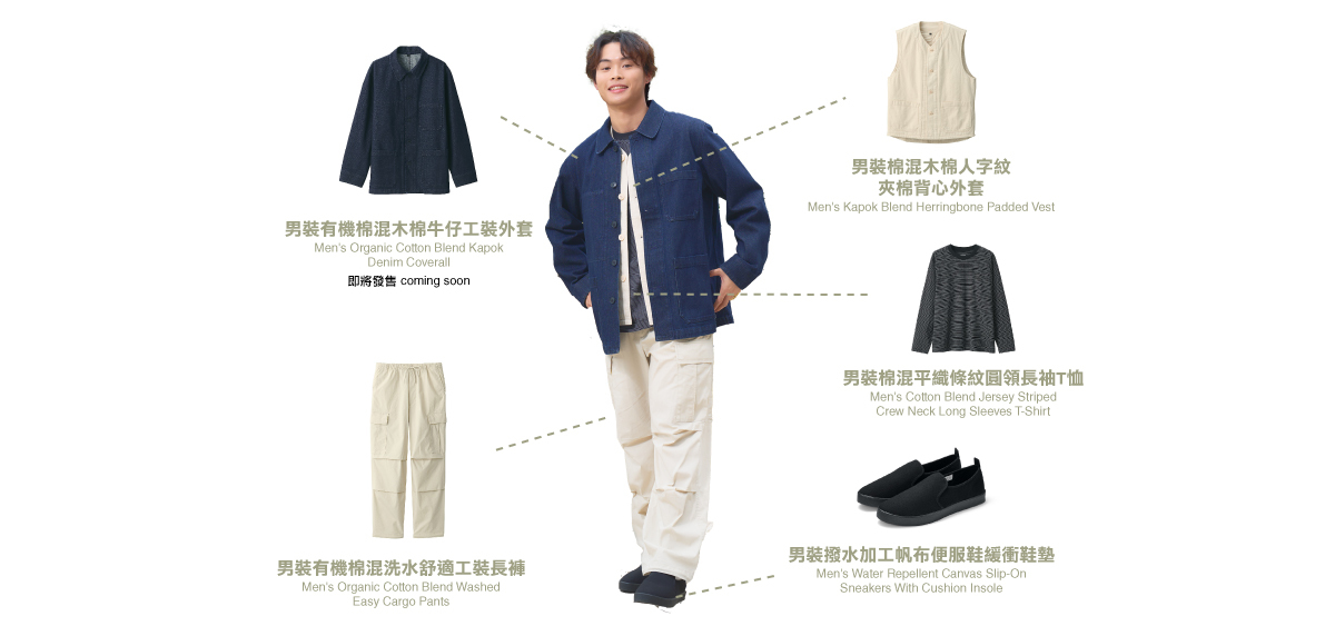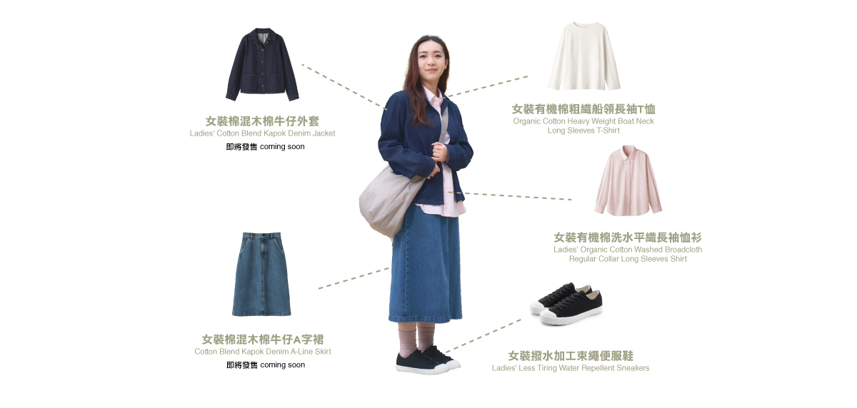 穿上舒適、柔軟且輕盈的藍色木棉和牛仔系列服裝,