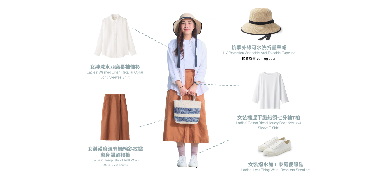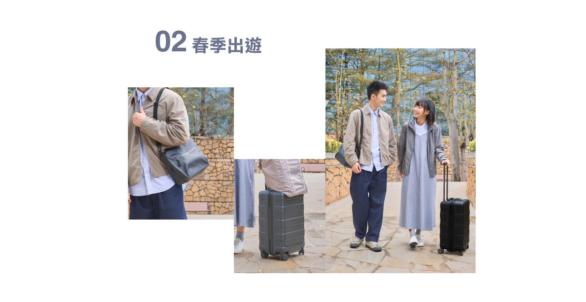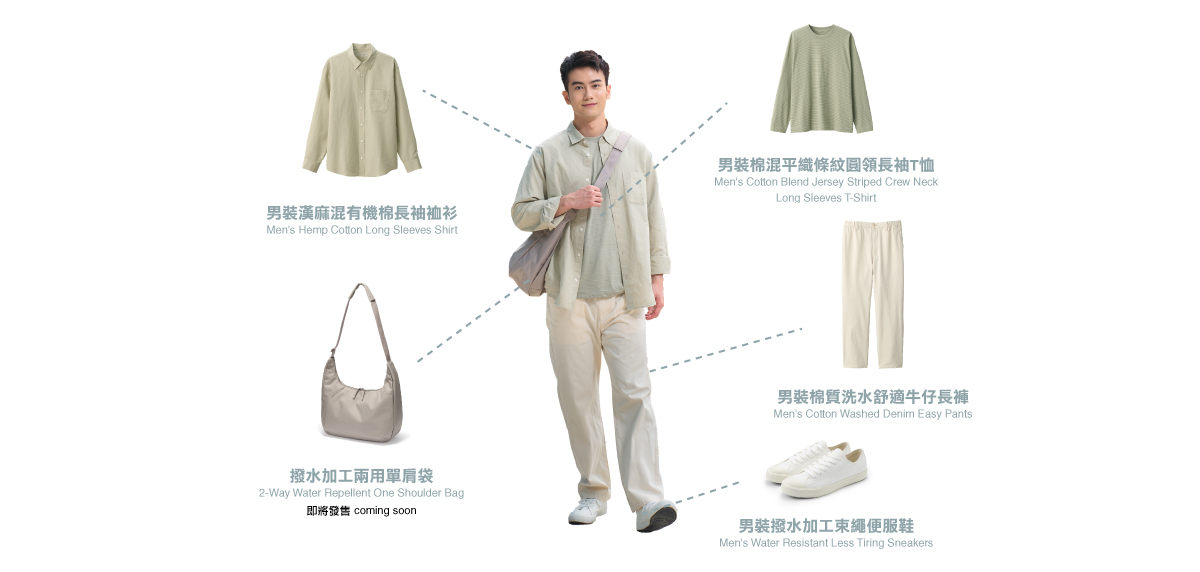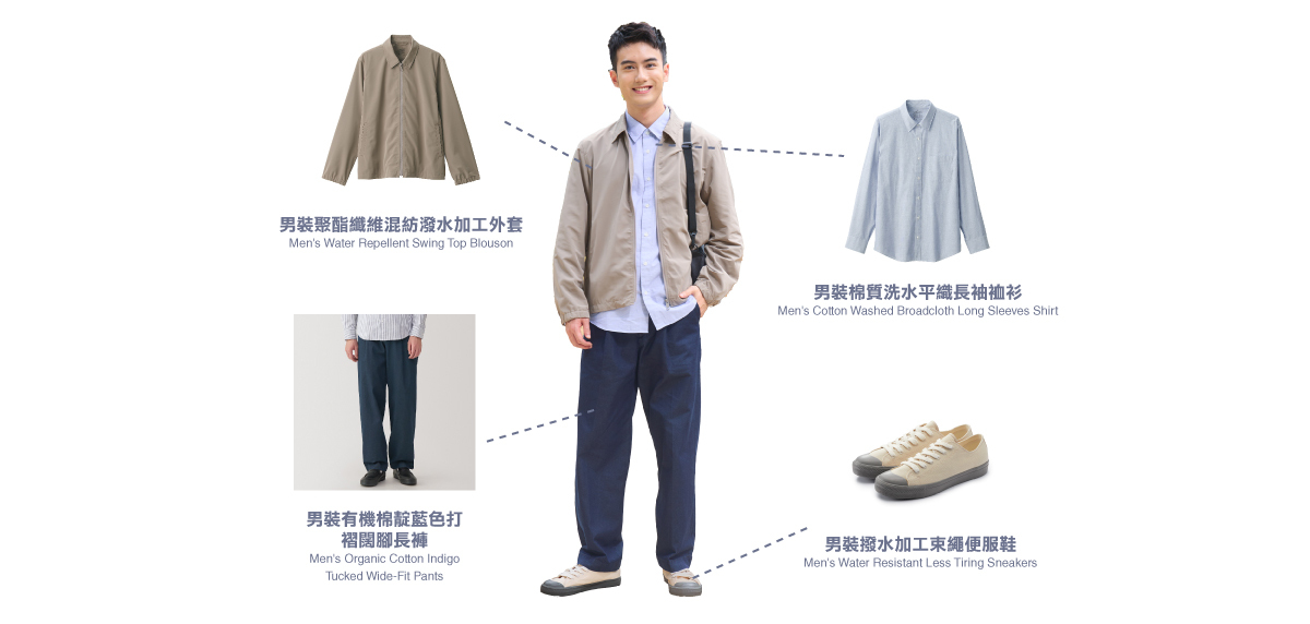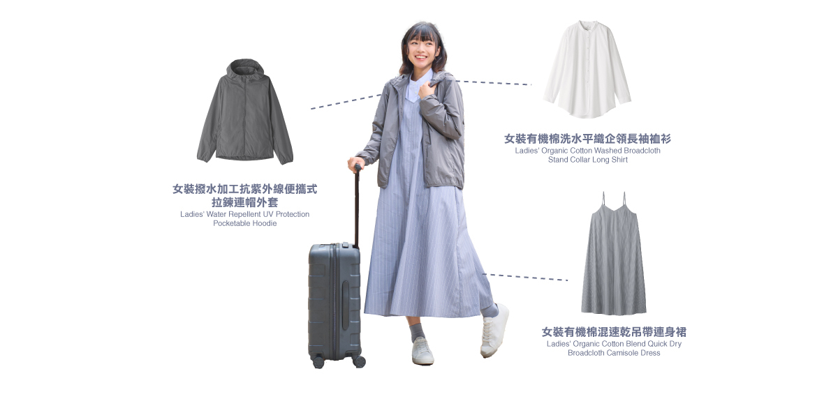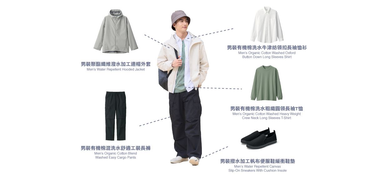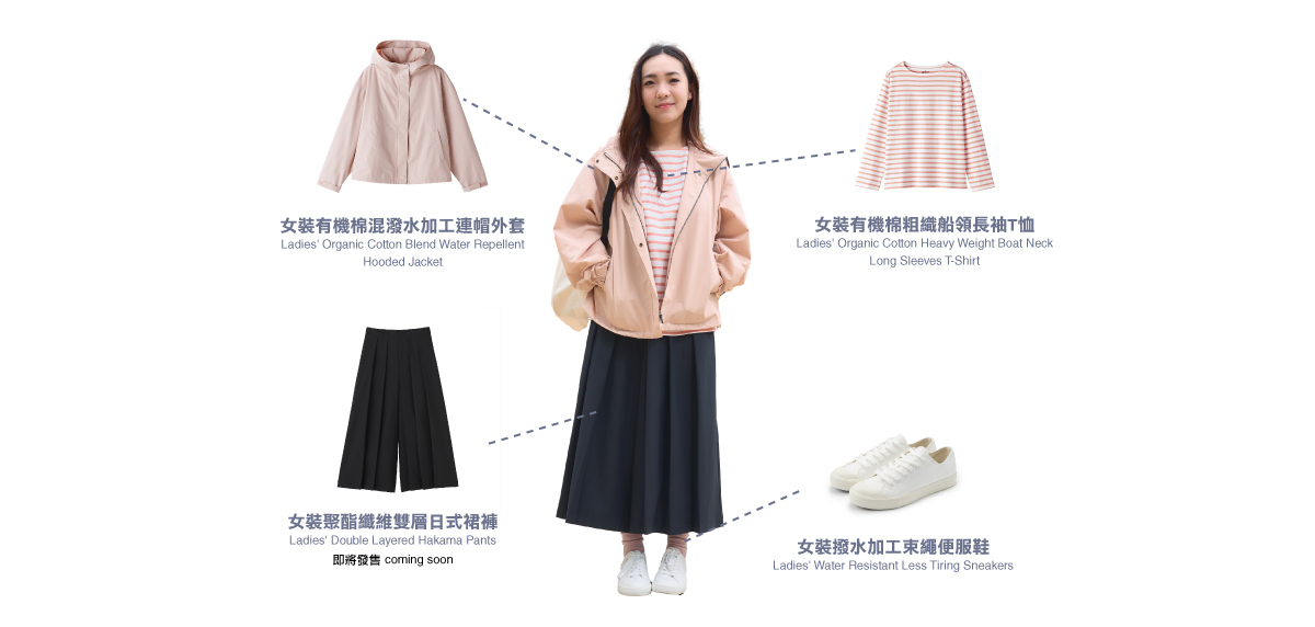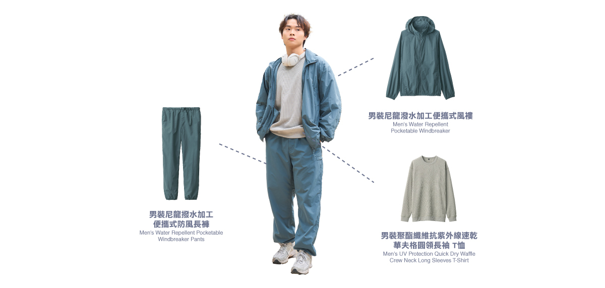 穿上備有防撥水、速乾功能的服飾配搭備功能性的旅行配件,帶來充滿春天特色的出遊造型。