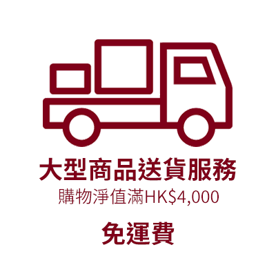 購買大型商品金額滿HK$4,000免運費,未滿$4000之訂單運費為HK$250。