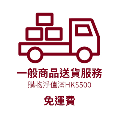 購買一般商品淨值滿HK$500免運費,未滿HK$500之訂單運費為HK$50;不適用於大型商品。