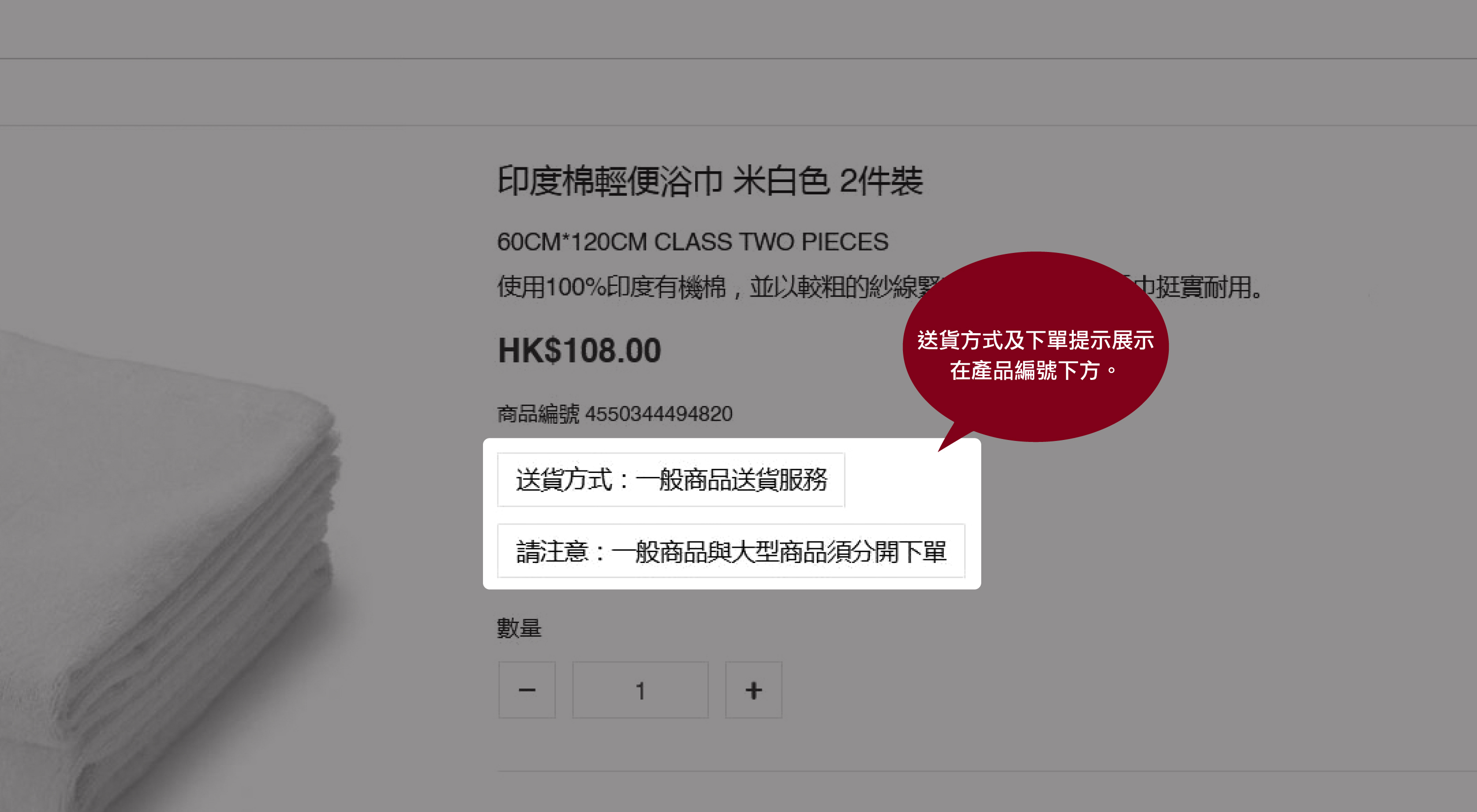 不適用於大型商品;未滿HK$500之訂單運費為HK$50。