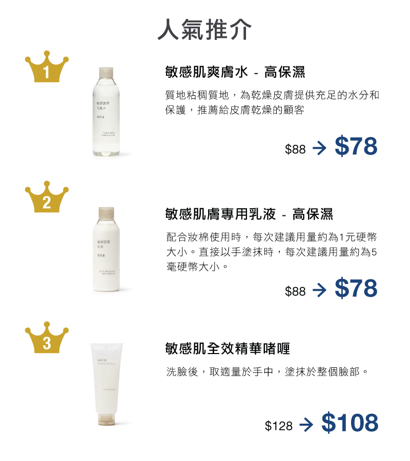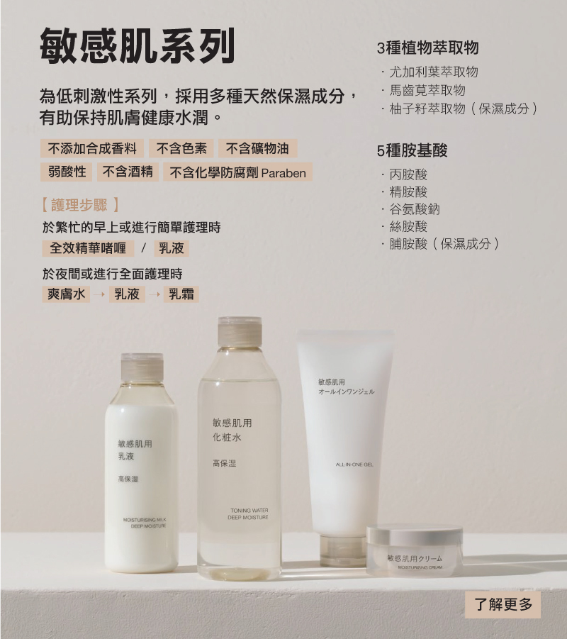 | 觸感 | 清爽不黏膩,容易滲透 | 清爽不黏膩,容易滲透 | 質感柔滑輕薄 | 容易滲透,滋潤保濕 | 質感適中,滋潤保濕 | 濃厚質感,滋潤保濕 |