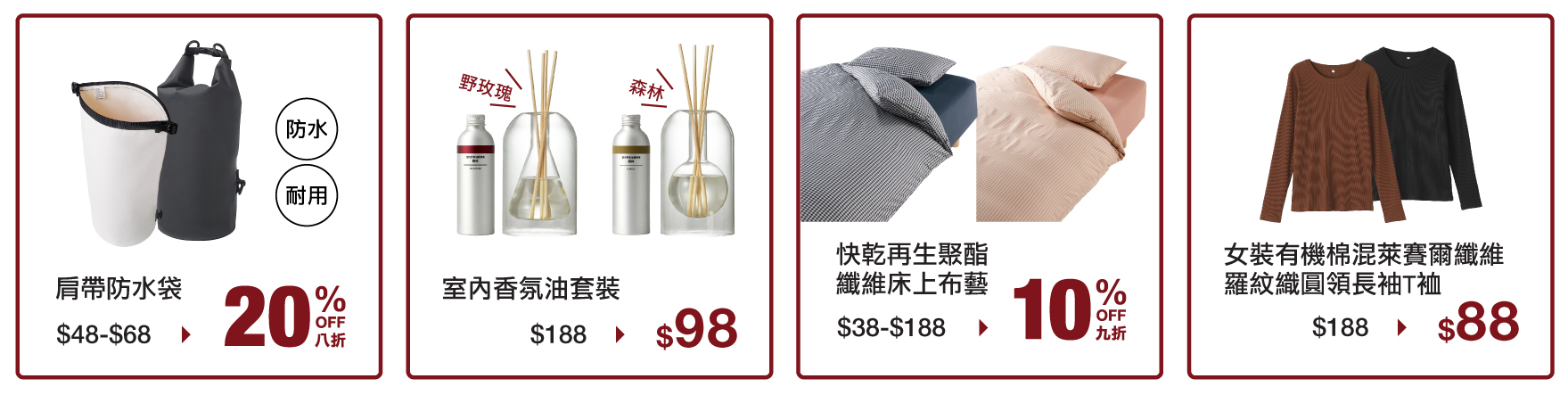 活動期間推出多重購物禮遇,涵蓋服飾、生活用品及食品等,讓您安坐家中輕鬆選購,持續與我們分享簡約、自然的生活理念。