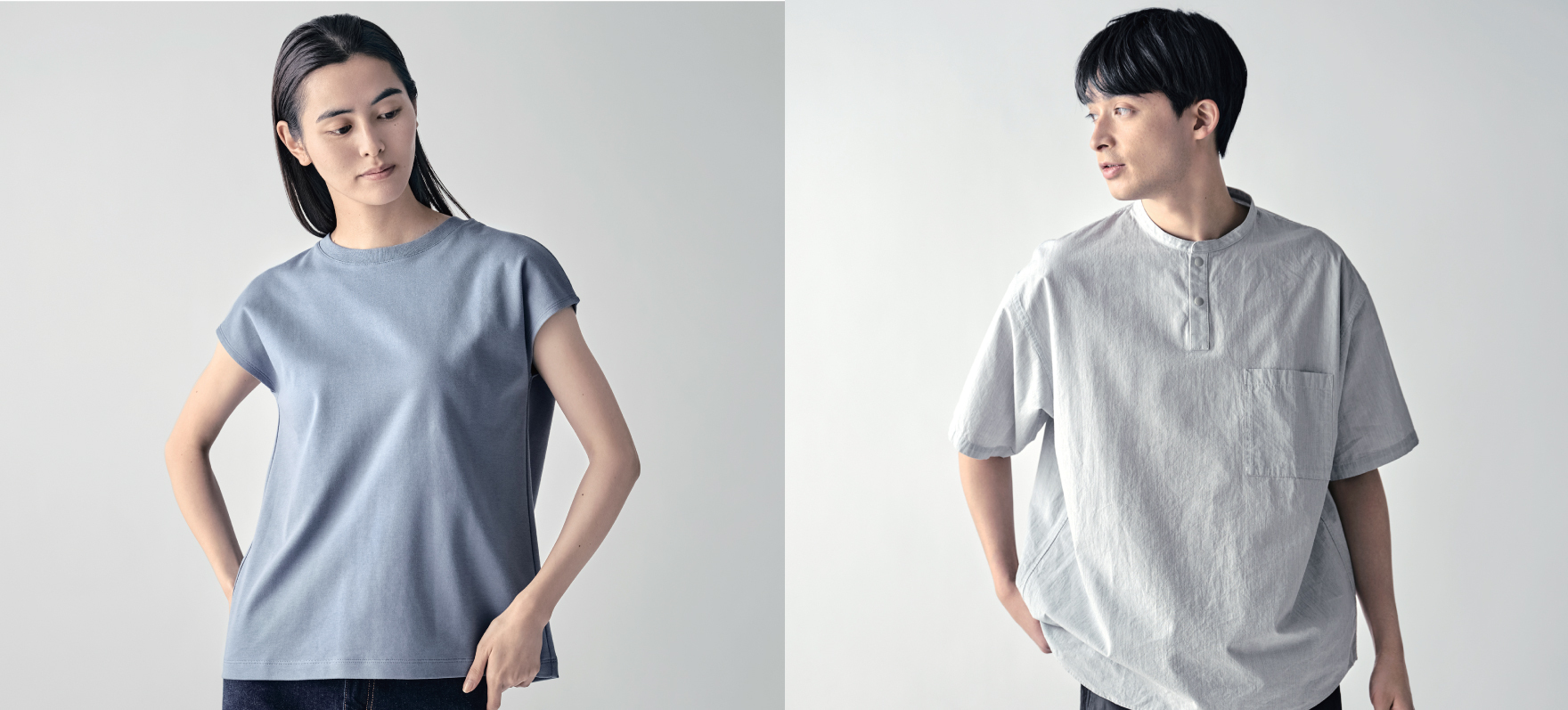 有機棉混紡紗線經特殊加工,令穿着時更感舒爽涼快;部分兼具防紫 外線功能,是適合夏季的基本單品。
