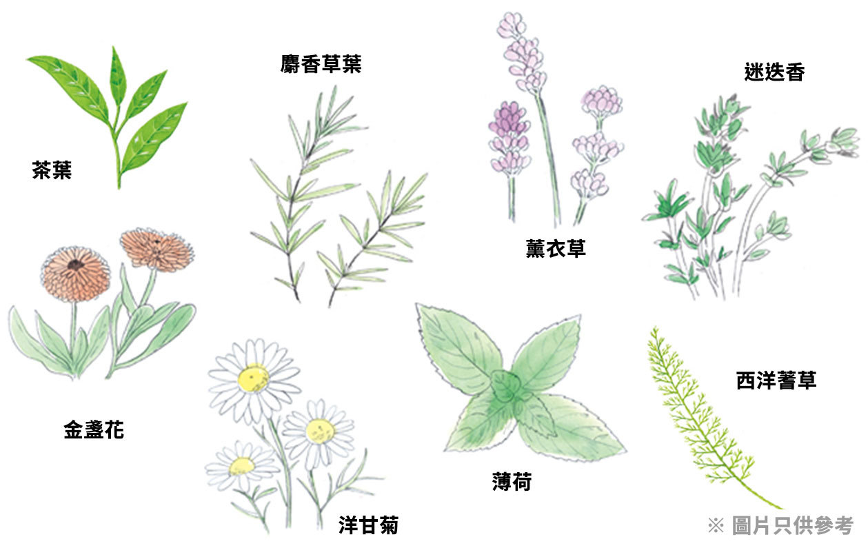 採用於日本靜岡縣三島市的草本植物園所種植的薰衣草及洋甘菊等6種天然植物為原料,再配合天然滋潤成分製成。
