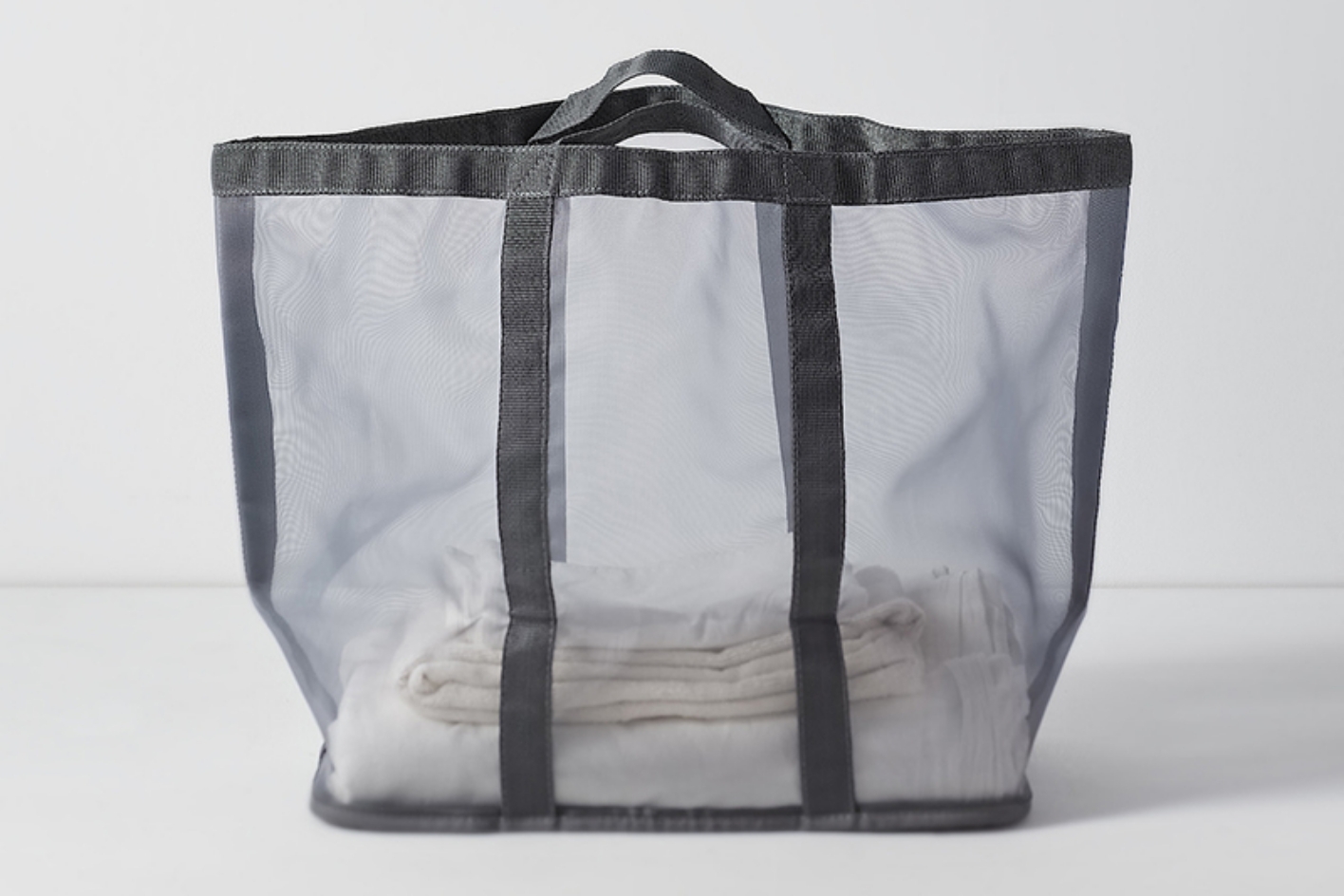 採用尼龍網織素材製成,輕巧透氣且有助辨識內存衣物數量。內側附有手挽,令搬運衣物時更輕鬆;不使用時可吊掛或摺疊存放,方便收納。