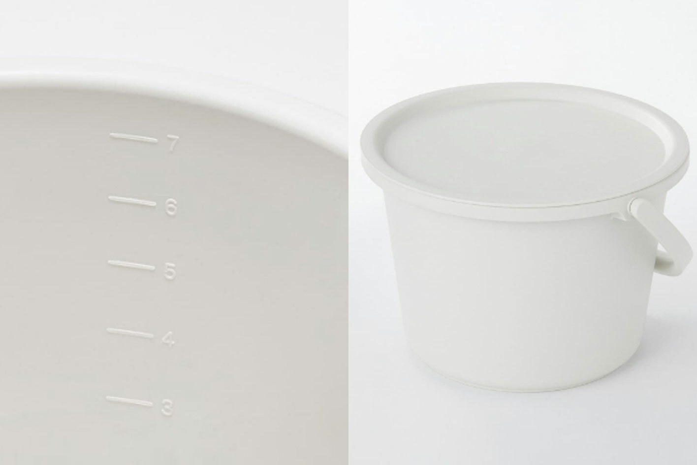清洗較難去除的污漬時,可於洗衣前以洗衣液浸泡衣物。PP水筒容量約為7.5公升,內側附有以1公升為單位的刻度,方便調節洗衣液及清水的份量。