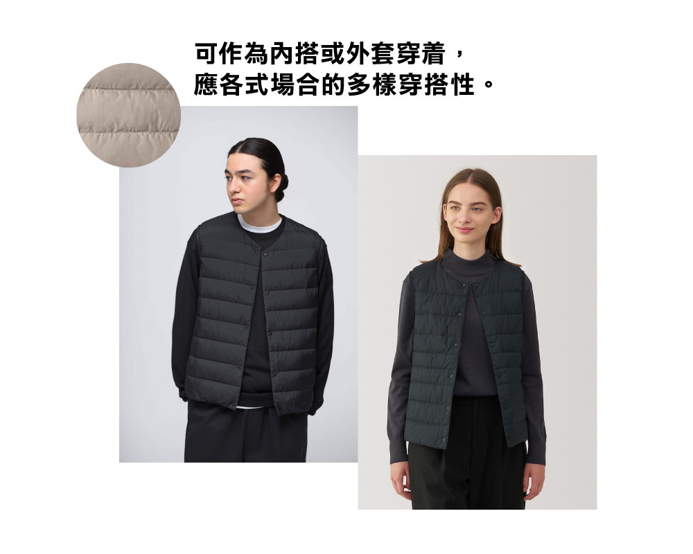 保留羽絨的蓬鬆度﹐同時調整充絨量,令剪裁更見俐落。厚薄恰到好處,內搭或外穿皆宜,輕鬆配襯日常造型。