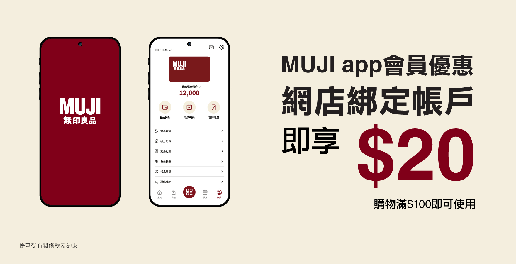 已登記MUJI app的網店會員可按 連結 領取優惠券。