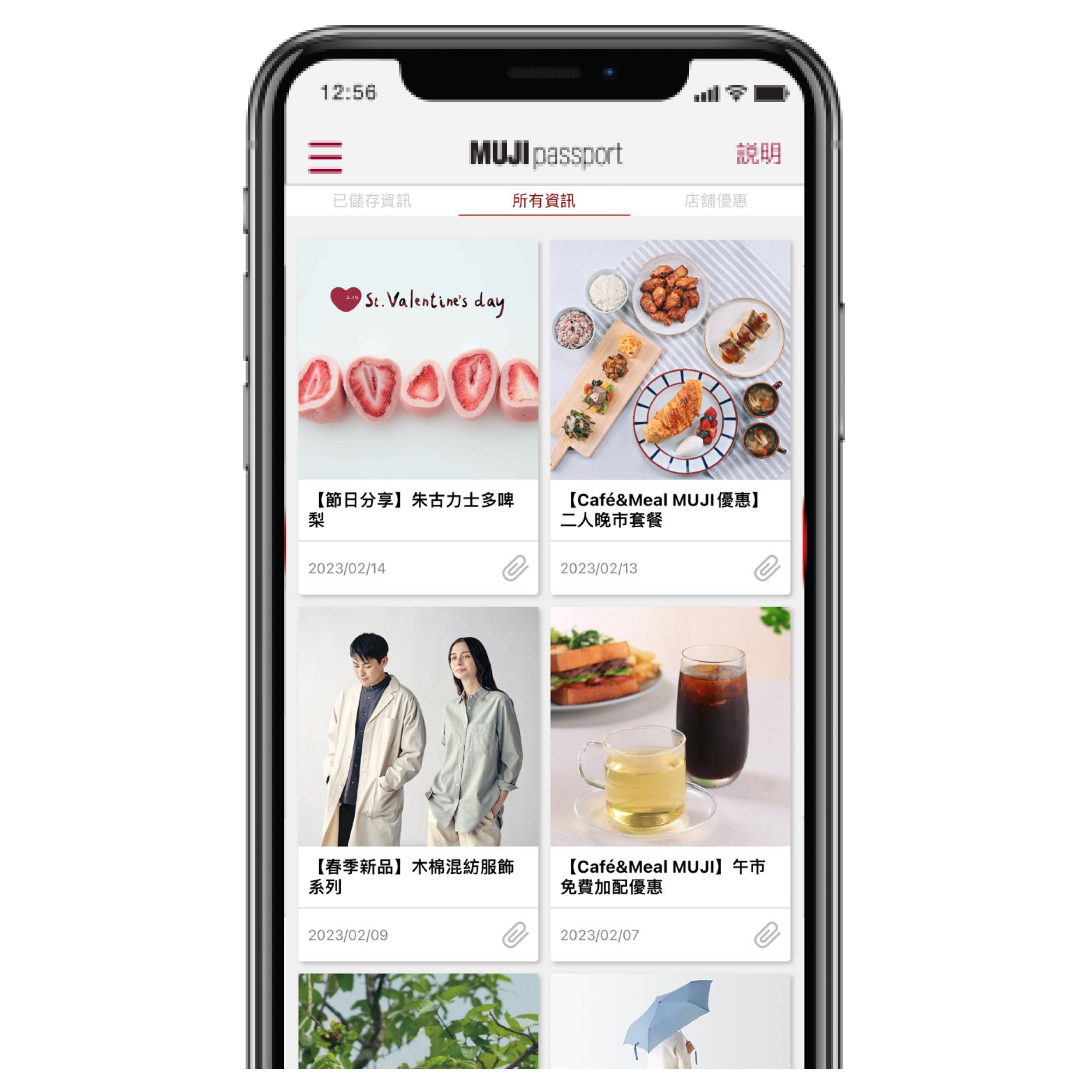 專享不定期電子優惠券,涵蓋各種生活日用品及Café&Meal MUJI餐飲優惠。