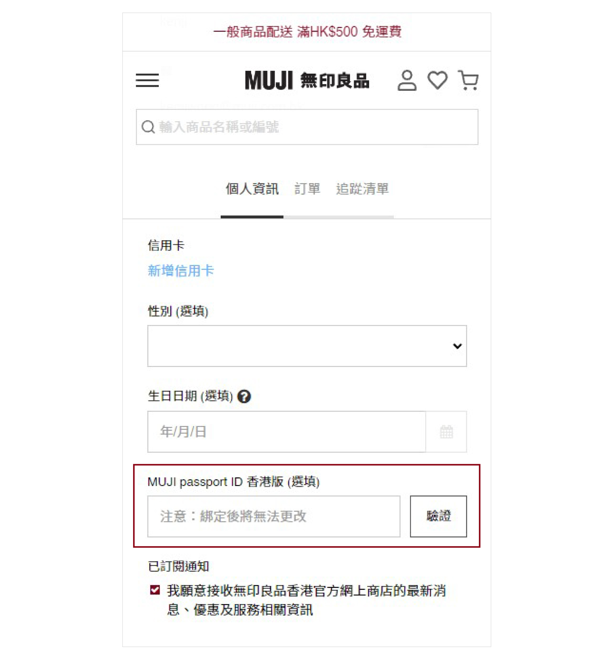 如何綁定MUJI passport ID到無印良品香港官方網上商店帳戶