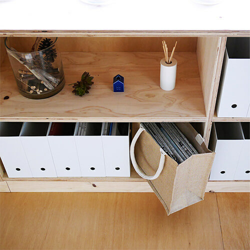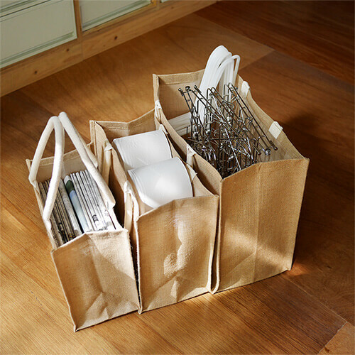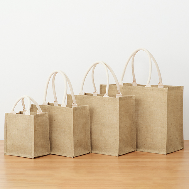 採用黃麻素材製作而成的袋子。備有B5、A4、A3 3種尺寸,除了可以當作袋子使用外,也可用於房間的整理收納。