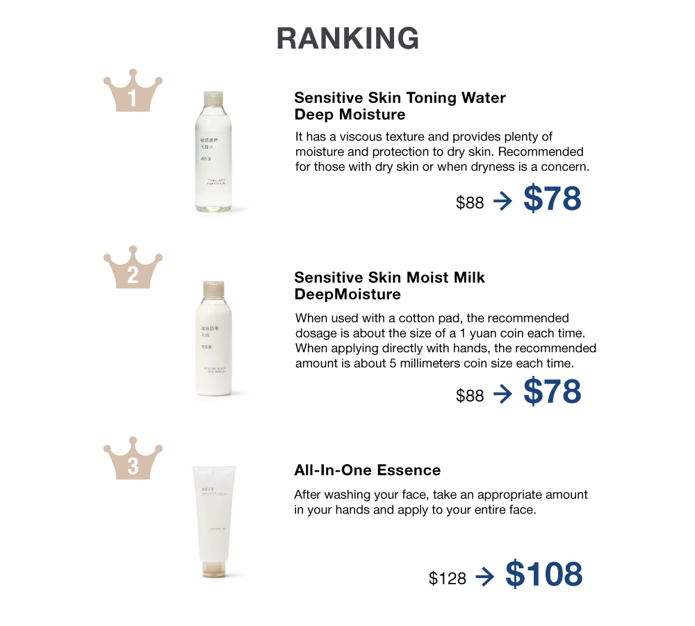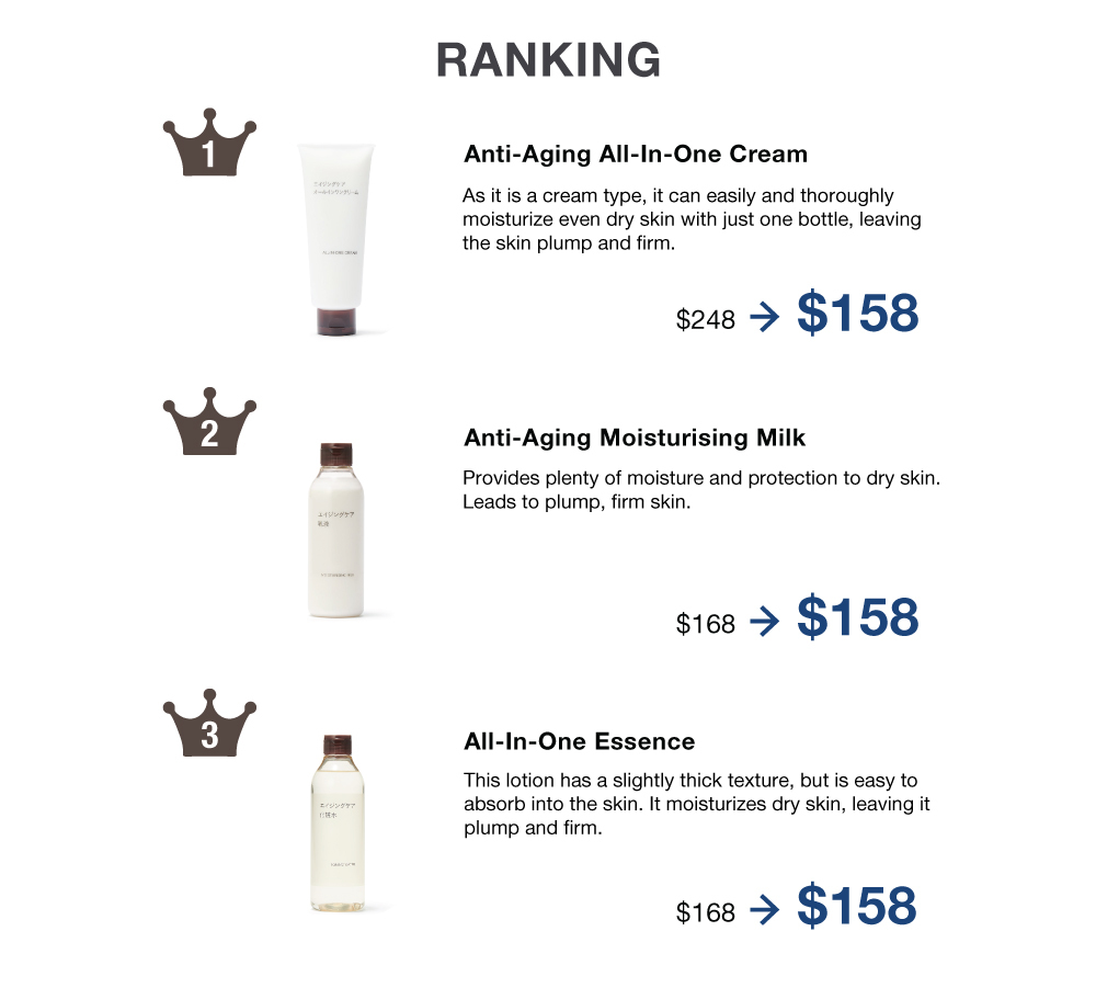 MUJI examines products through three lenses: material selection, process streamlining and packaging simplification.