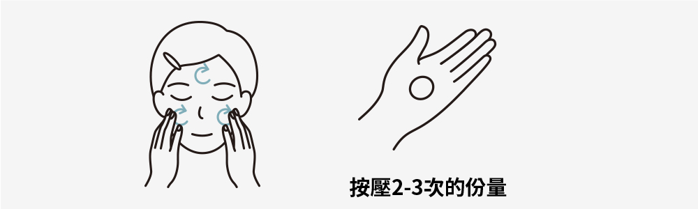 使用卸妝油時,按壓2-3次的份量約為一次卸妝的所需用量。