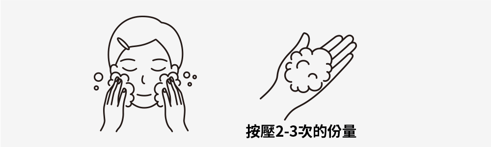 使用潔面泡沫時,按壓2-3次的份量約為一次潔面的所需用量。使用潔面乳時,每次約需2克。