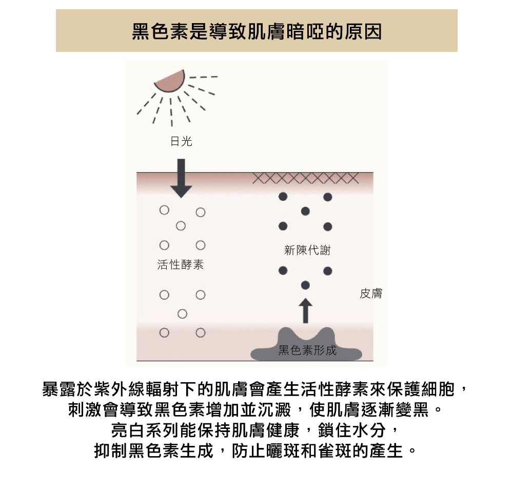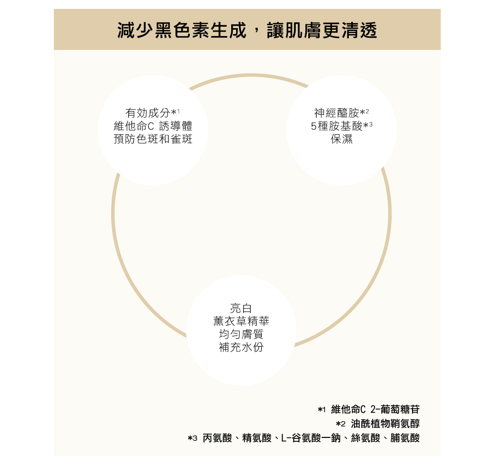 能夠鎖住水分,抑制黑色素形成,預防因曬傷而產生的斑點和雀斑,保持肌膚健康。