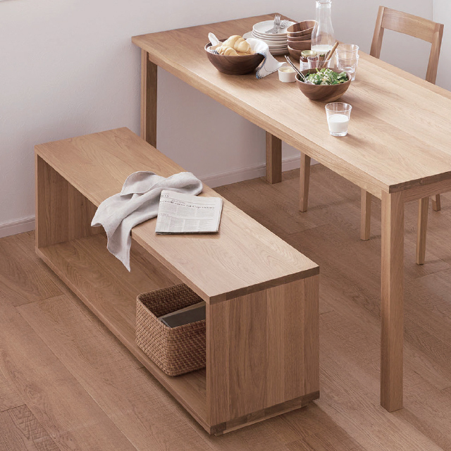 長櫈可作餐椅、茶几、床邊櫈或換鞋櫈等使用,用途廣泛。於餐檯與電視之間放置長櫈,可避免阻隔視線,並有助因應用餐人數靈活增加座位數量。