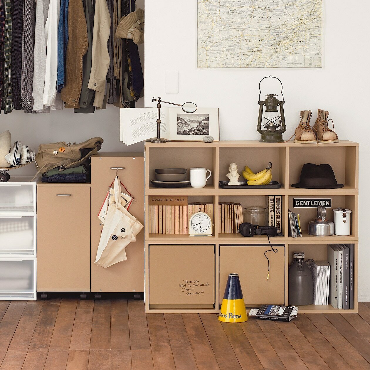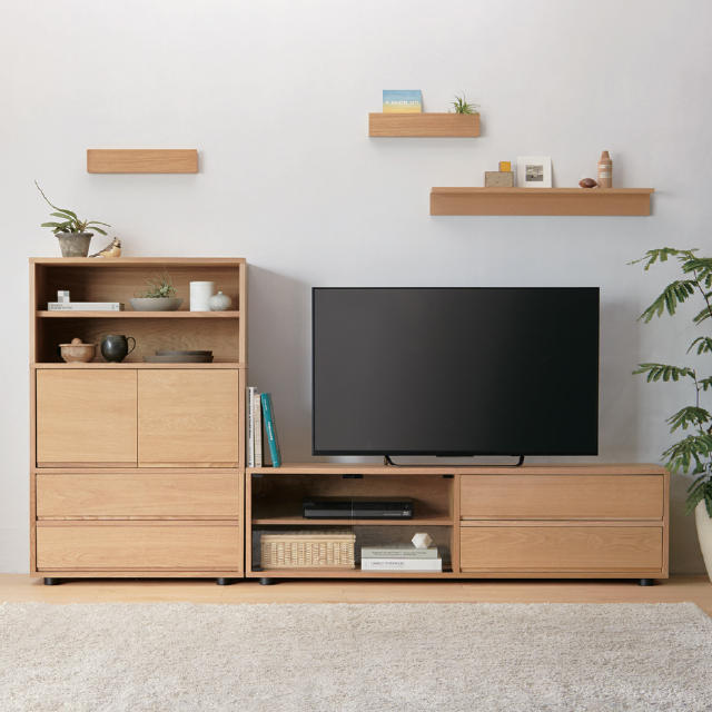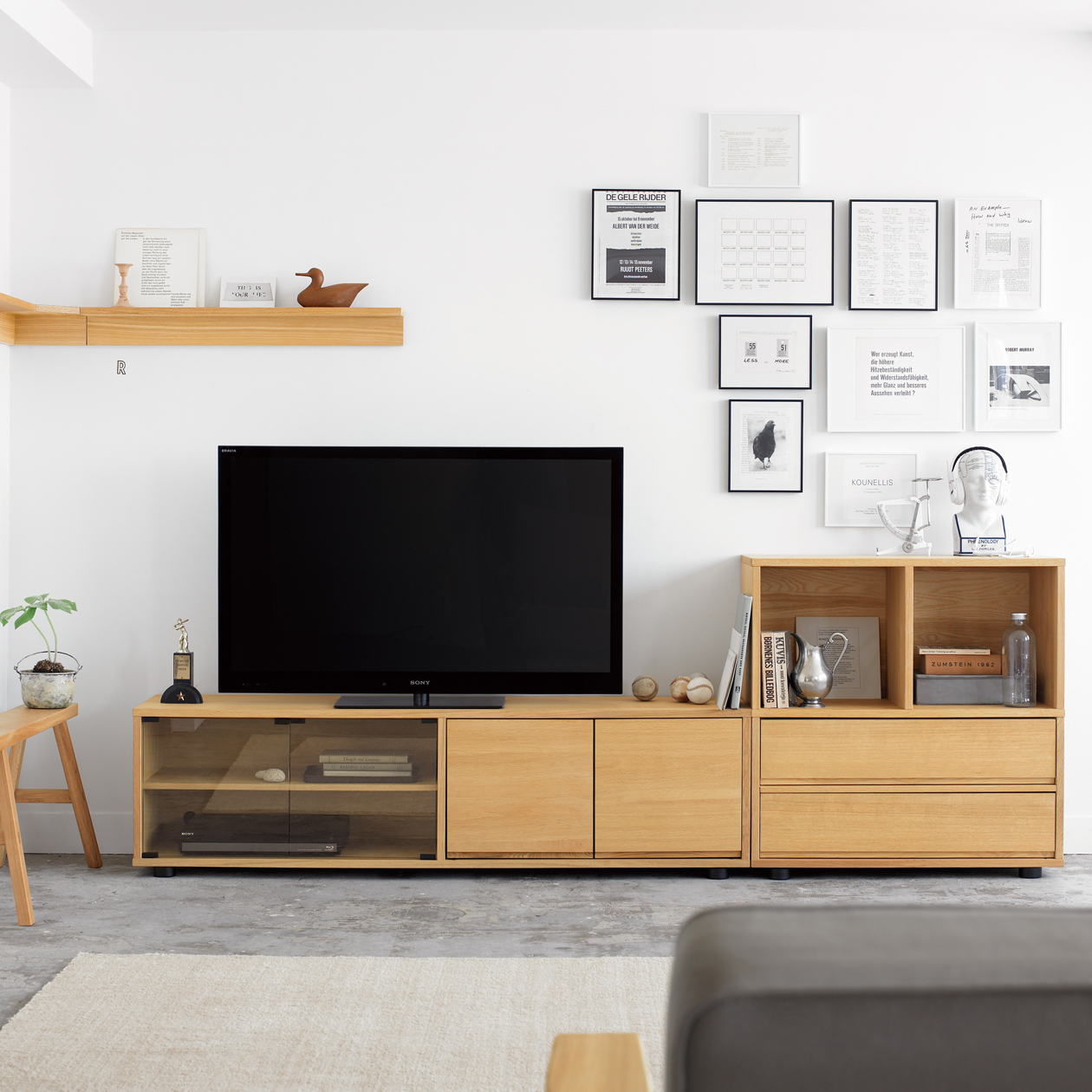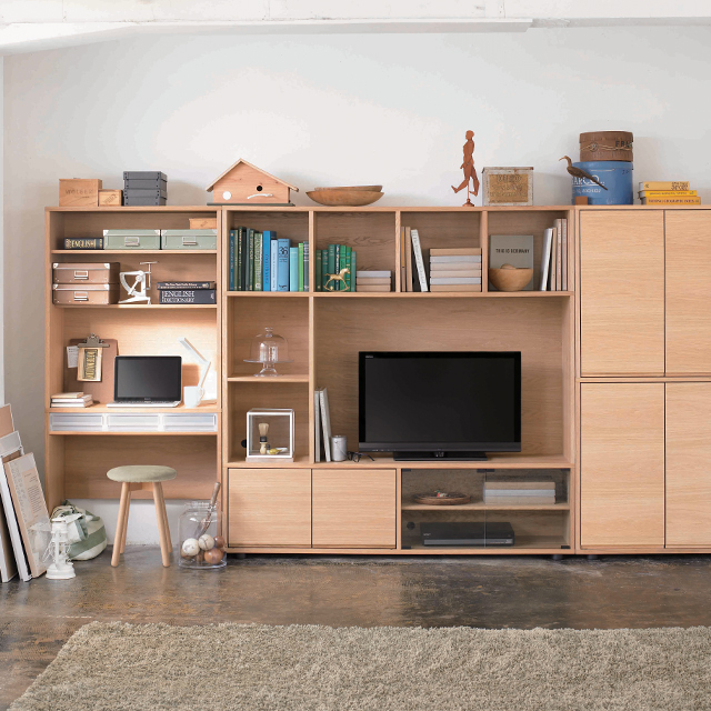 於基本地櫃上安裝連接櫃、櫃門及抽屜等組件,成為個人化收納組合櫃。用途廣泛,可作電視櫃、書櫃、客廳或寢室儲物櫃等使用,收納各式生活用品。