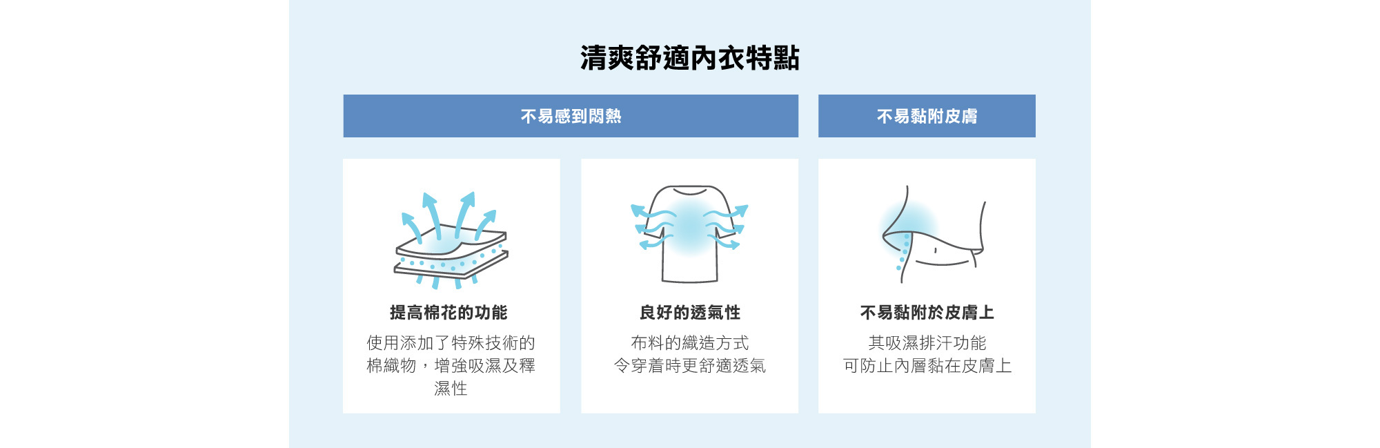 即使流汗也不易悶熱,並能保持乾爽貼膚的機能型內搭